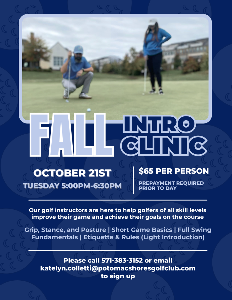Spots are limited, so donβt wait! Grab your clubs (or borrow ours!) and get ready to build confidence, improve your game, and have fun this fall at Potomac Shores Golf Club.