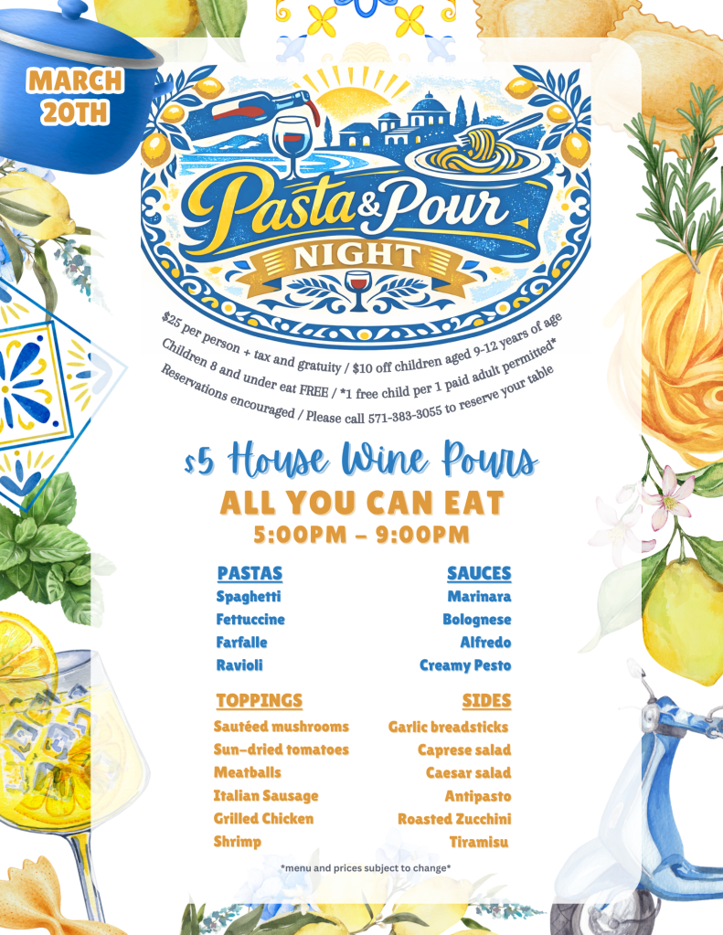 Nothing brings people together like pasta and wine so join us for Italian Night at Tidewater Grill—an all-you-can-eat Italian buffet with something for everyone, from classic spaghetti to shrimp, meatballs, and more.