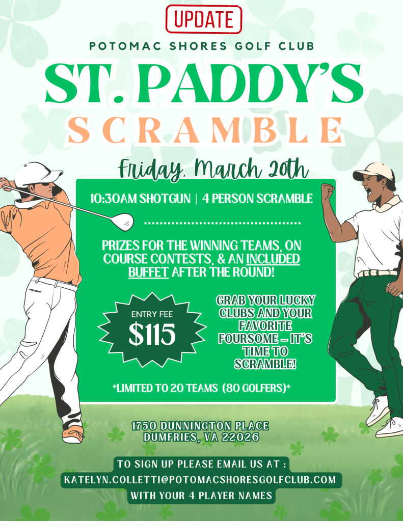 Email katelyn.colletti@potomacshoresgolfclub.com or complete the form below. ⛳🍀