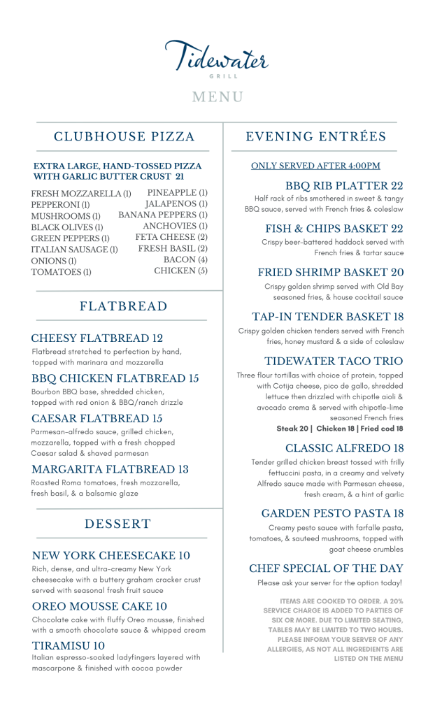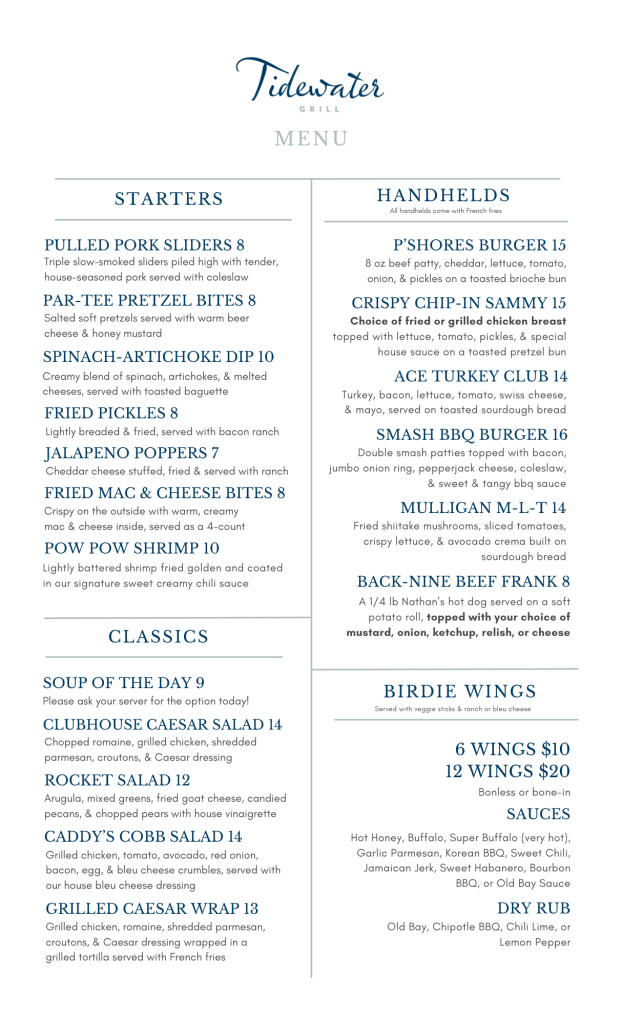 Tidewater Grill Lunch/Dinner Menu